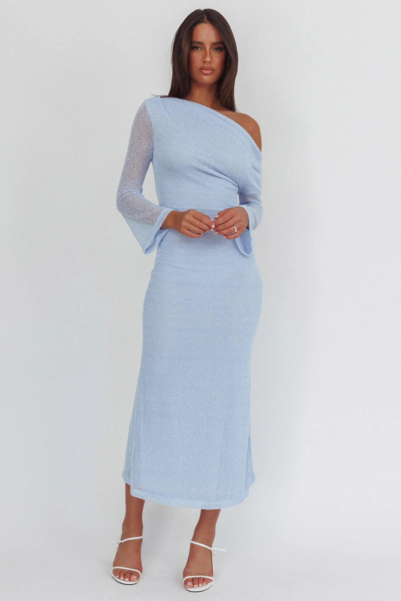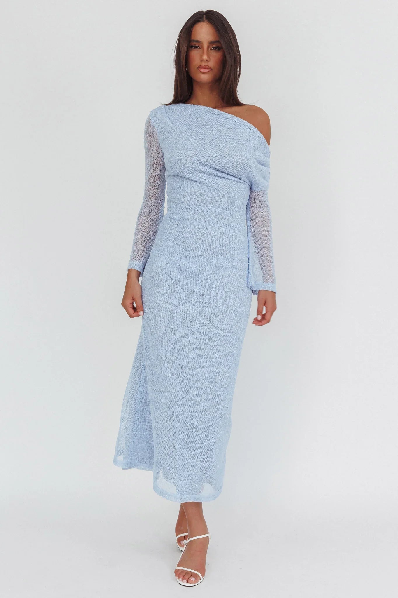 Steal the spotlight in our gorgeous Alivya mini dress. Featuring sheer sleeves and an off-shoulder design. It's perfect for a special birthday celebration teamed with strappy, nude heels and a tote for a super chic look.