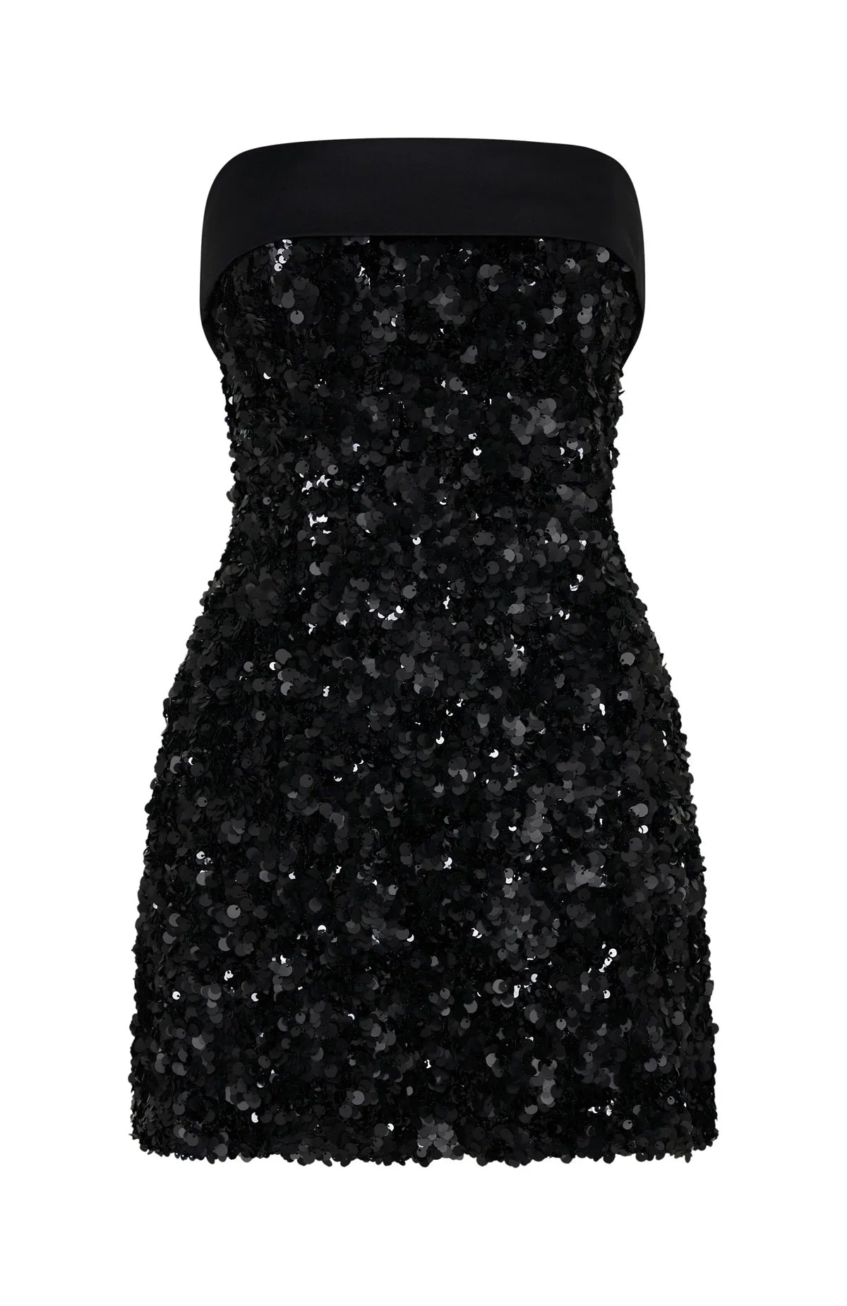 Baby it is cold outside! The All In Strapless Sequin Mini Dress in Black delivers show-stopping glamour with its strapless neckline with discreet grip-tape support and fold-over silky bust detail. Covered in shimmering sequins and shaped in a figure-skimming silhouette, it's fully lined and fastens neatly with a back zipper and hook-and-eye closure. Style it with sleek heels and a statement bag for a look that’s ready to shine.