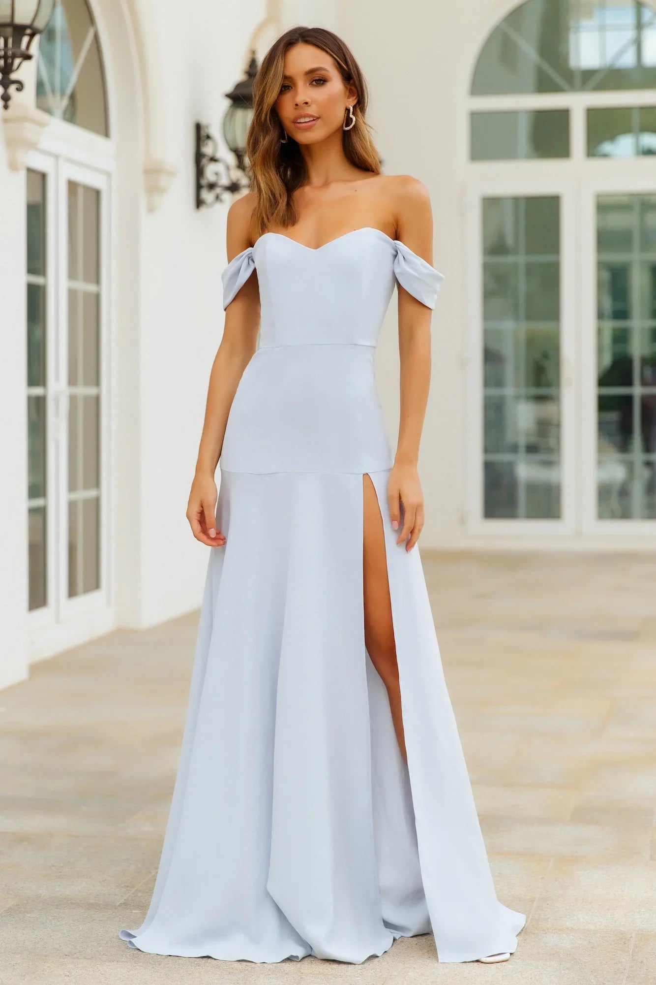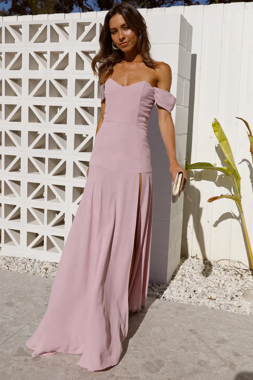 Heads will turn when strutting into your next event in the Blushing Cinderella Maxi Dress. An off-the-shoulder design with a wired corset bust ensures the detail snatches you in and shows all your best features. This dress can be styled with any natural heels, bouncy curls and a glowing makeup look.