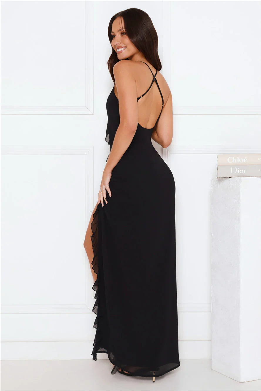This dress is the one you've been searching for. The Boat Parties Maxi Dress features a V-neck and gorgeous frills. Style with heels and curls for all the compliments.