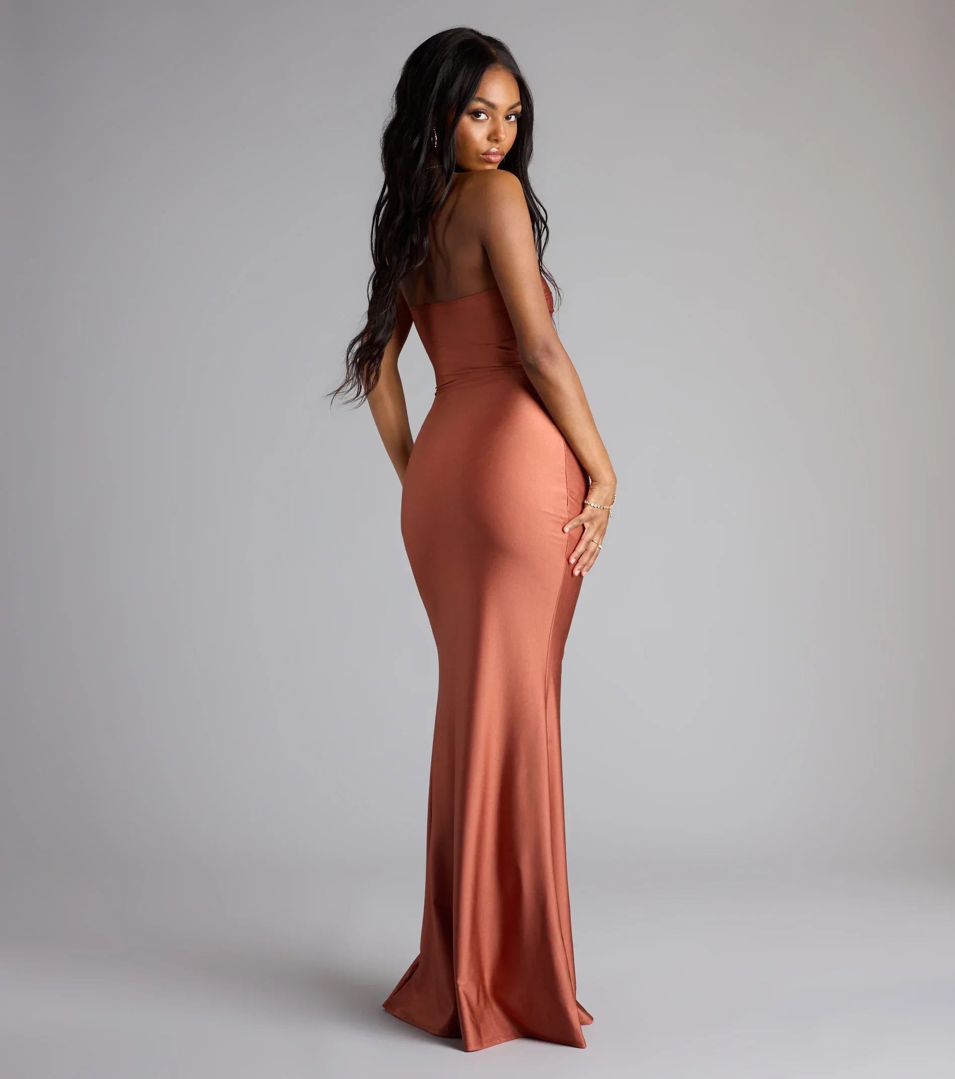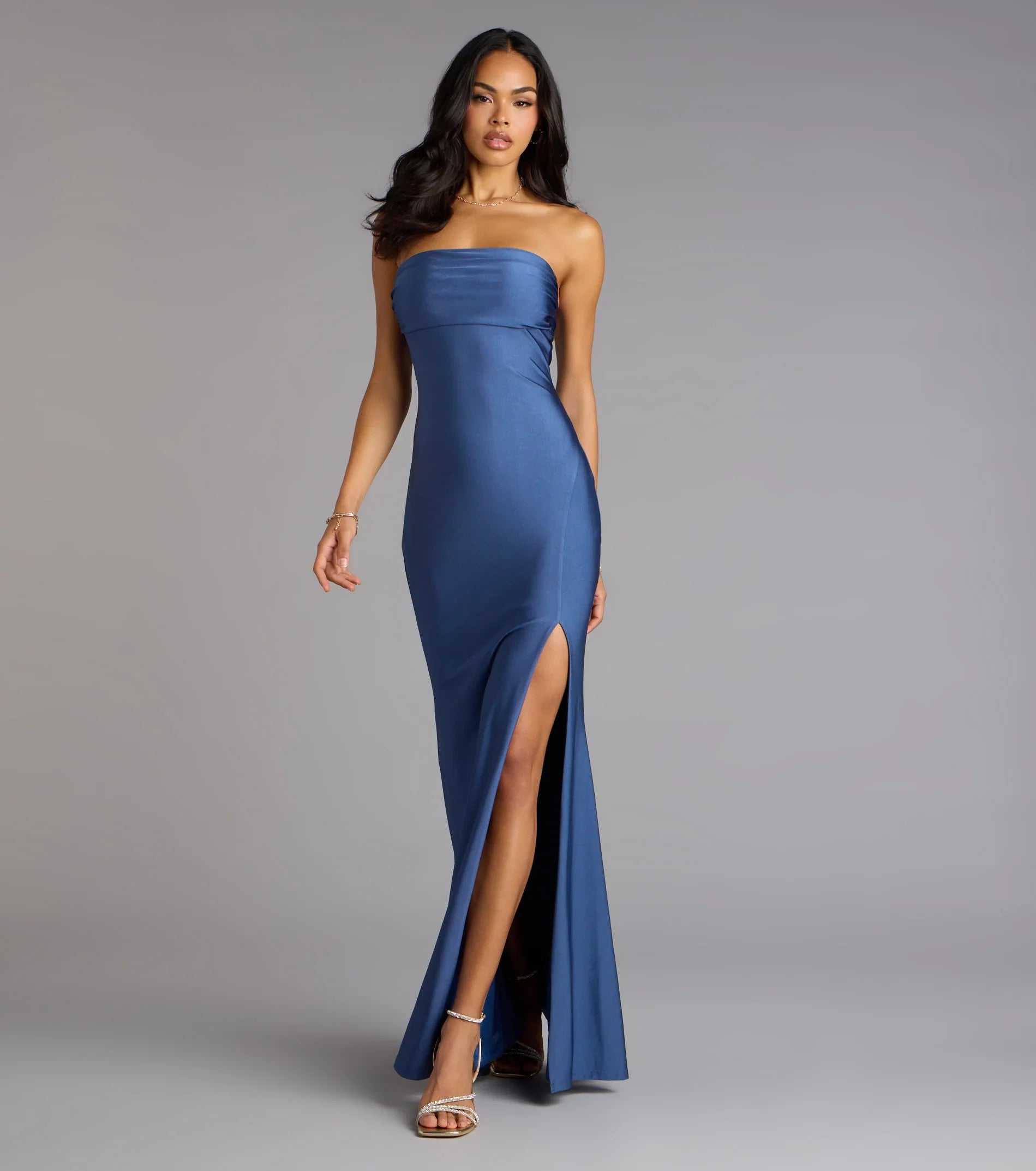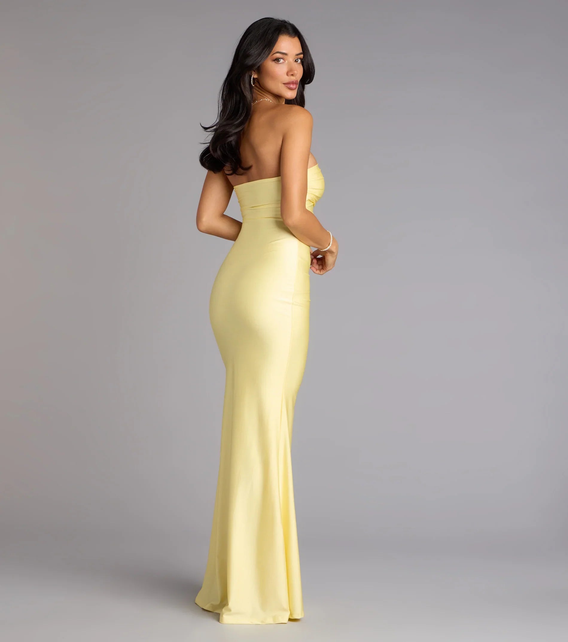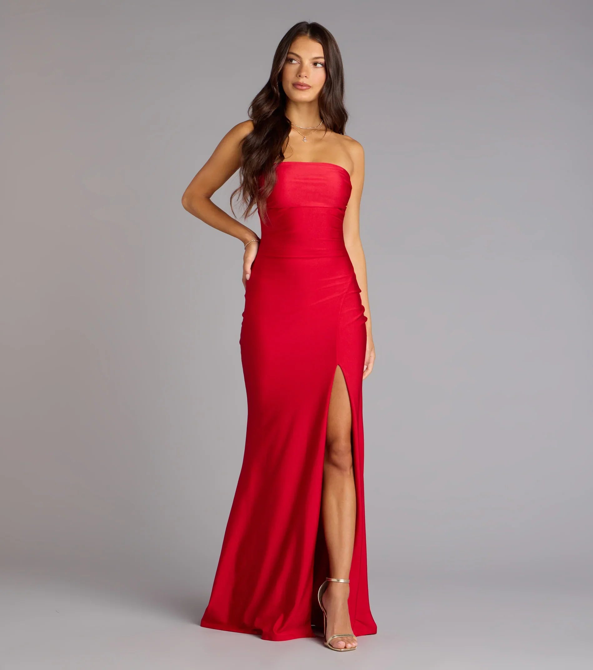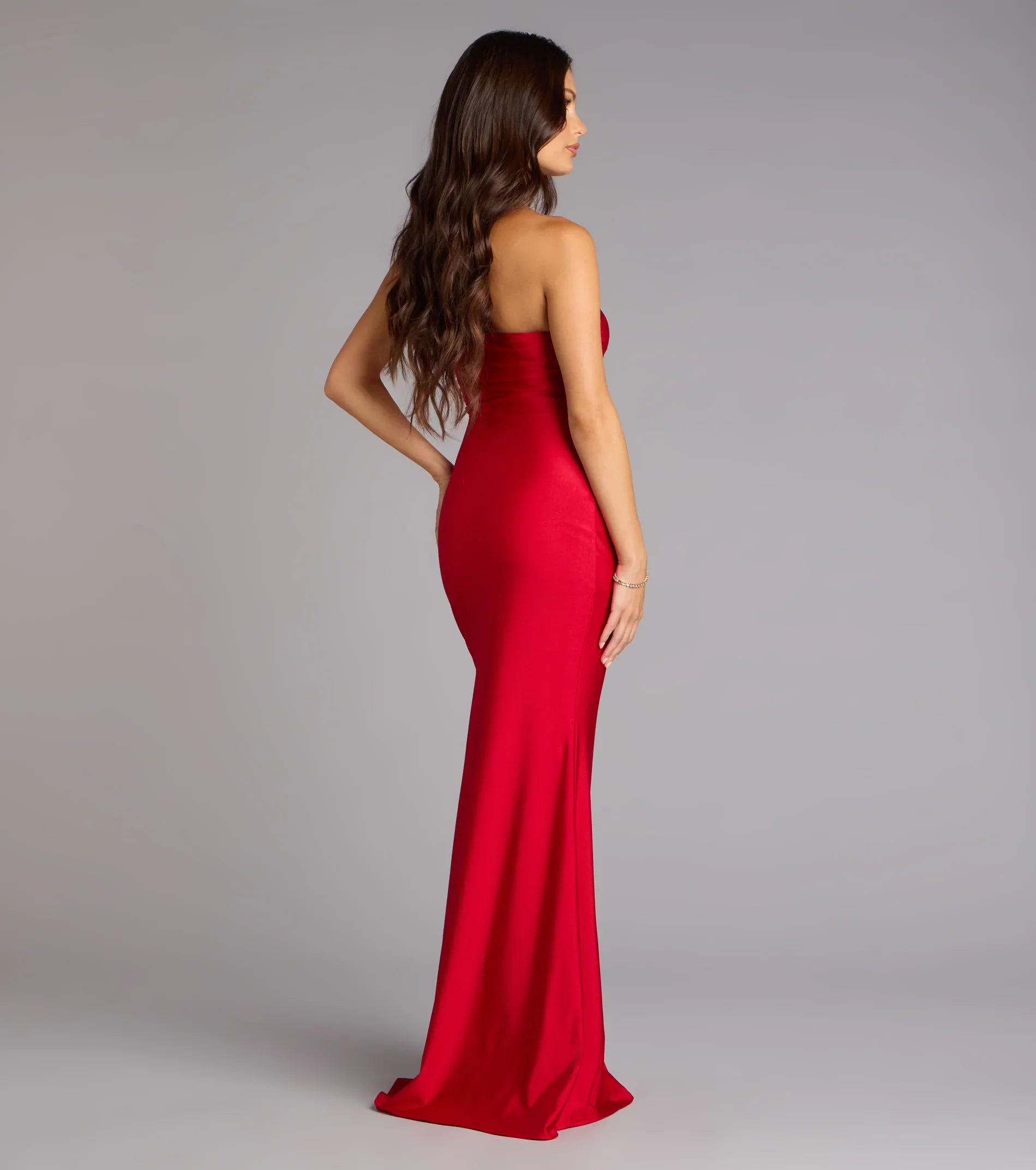 Classy yet modern, the Cheryl strapless formal dress is the epitome of chic with a high slit for movement and a mermaid silhouette that accentuates your figure!