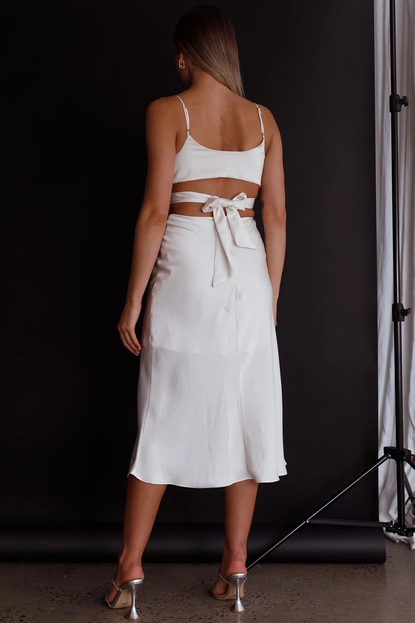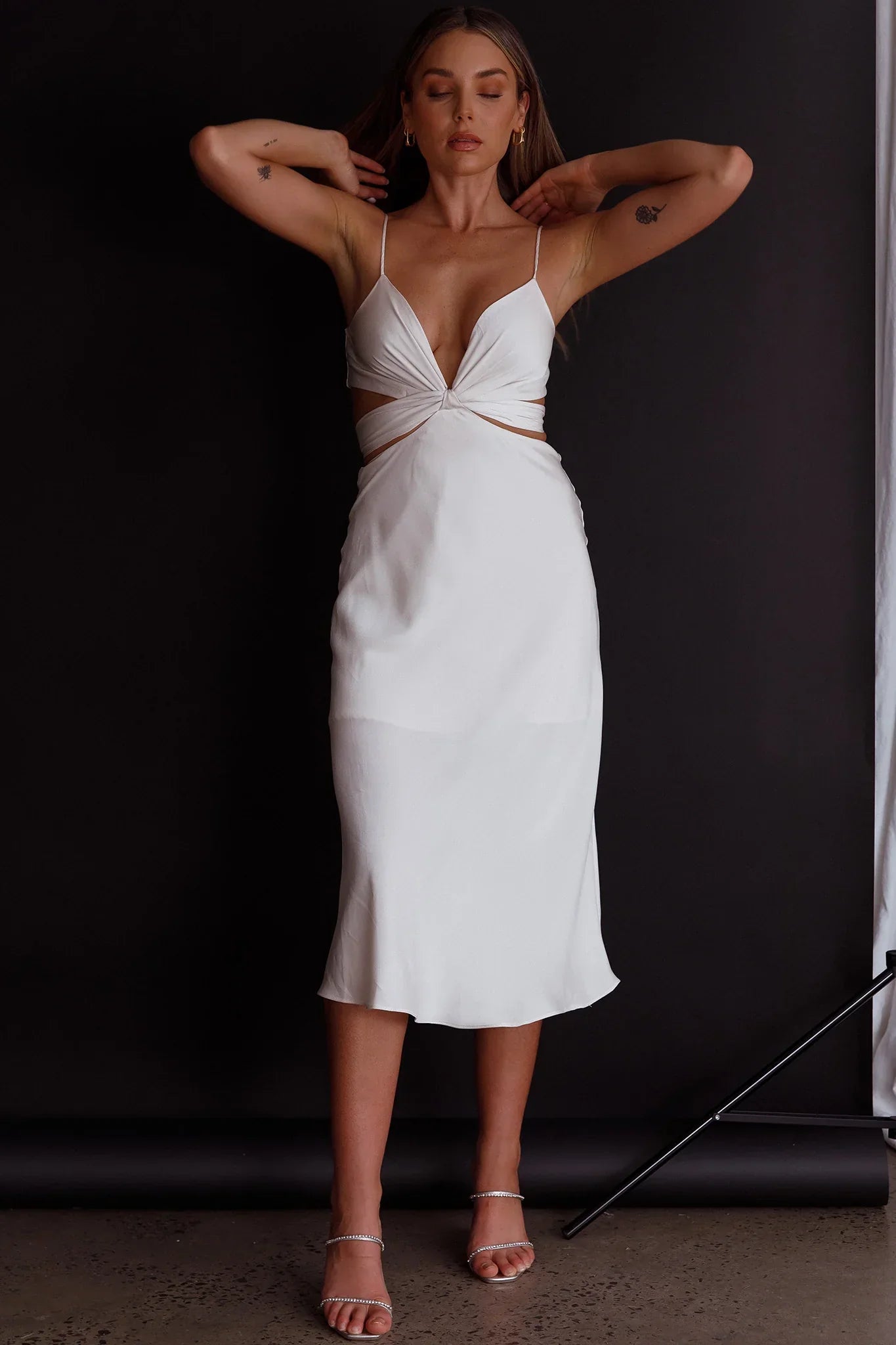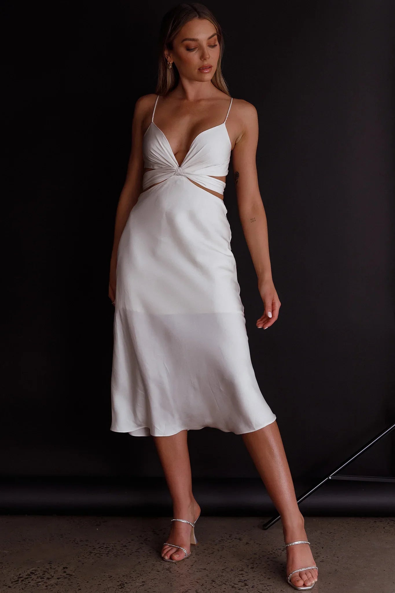 You'll be swept of your feet in our pretty Dance With Me midi dress. The perfect dress for wedding season or outdoor, Summer events. We are in love with its crossover bust feature and soft satin fabric. Team it with mules and a clutch for an elegant look we are loving.