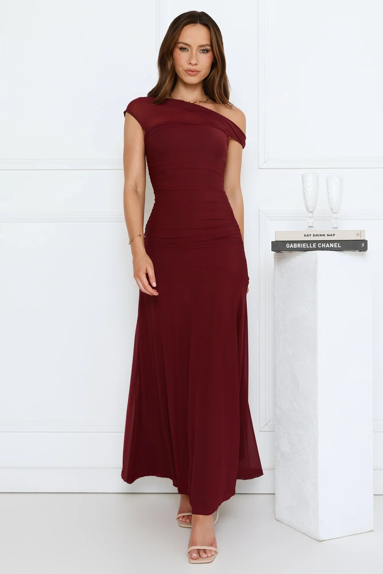 Make a statement in the Dusk Noir Off Shoulder Maxi Dress. Made in stretch mesh with a sheer neckline, off-the-shoulder design, and flowy silhouette, this maxi is perfect for brunches, garden parties, or special occasions. Pair with strappy heels and jewellery to complete the look.