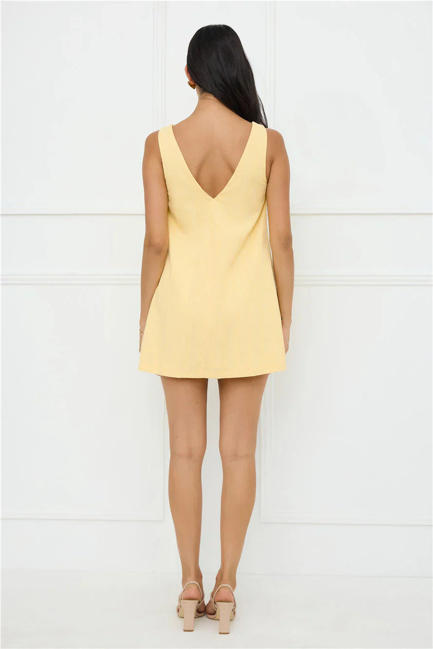 The Effortless Icon Mini Dress features a textured pattern, a flowy fit, and a flattering V-back design, perfect for a relaxed yet stylish vibe. Style with sandals all summer.