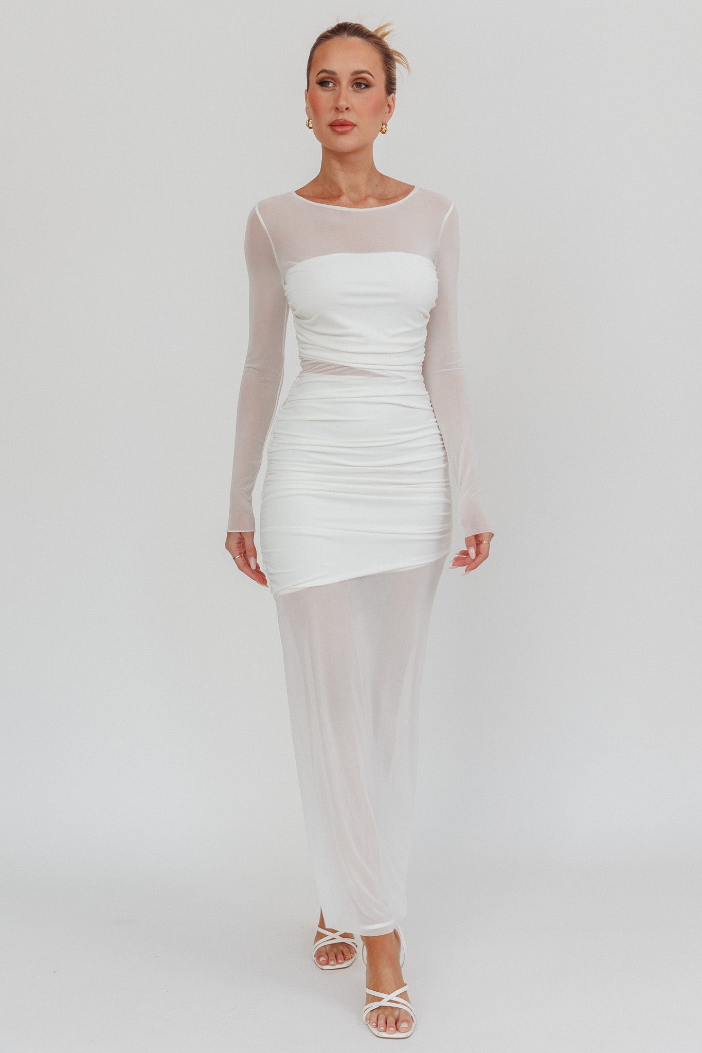 Be bold in our Harpa maxi dress! This dress is the epitome of contemporary chic! It features an illusion mesh neckline, a waist cut-out and gathered texture. Take your look to the next level by accessorising with your favorite jewelry!