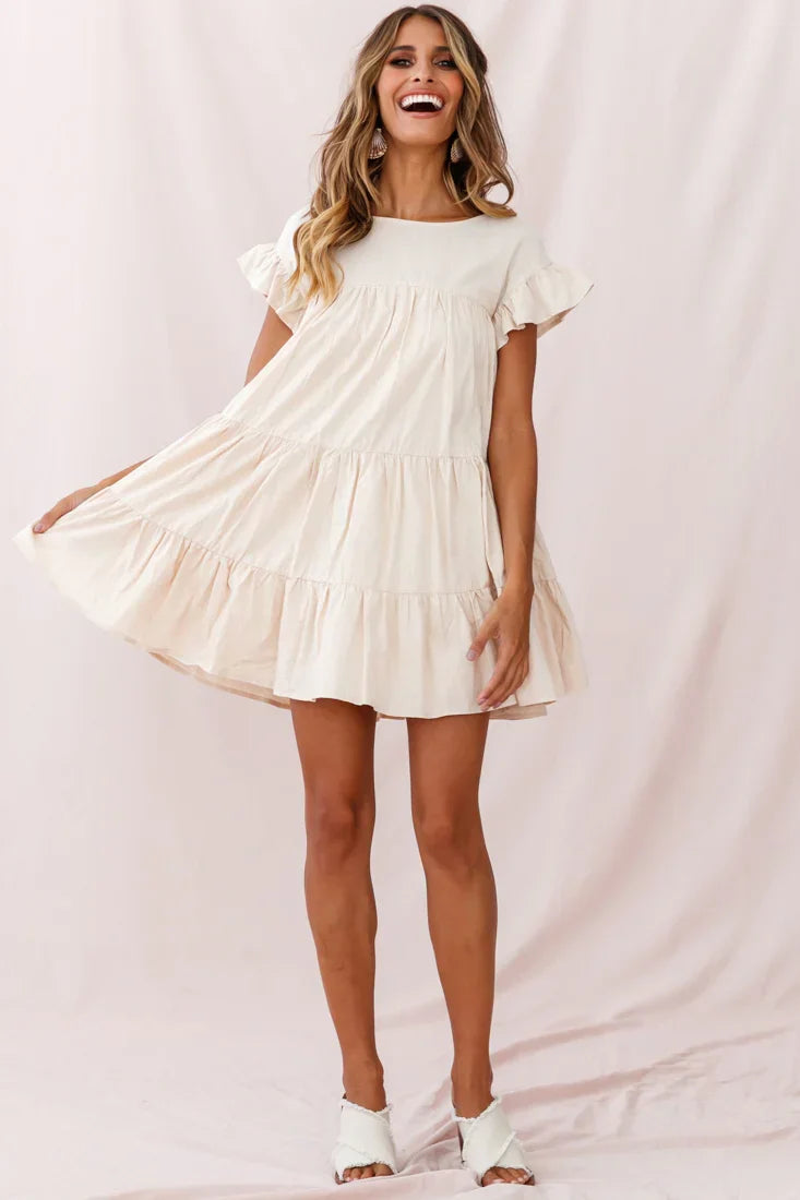 Stylish yet comfortable, our Hyacinth smock dress is a Spring/Summer must have. Perfect for throwing on over your bikini and hitting the beach or wear it to a sunny day picnic. Fully lined, it features a loose, flattering cut with cute, ruffle sleeves and keyhole button closure at the back. Pair it with a fedora and some espadrille wedges or sandals for a look we are loving.