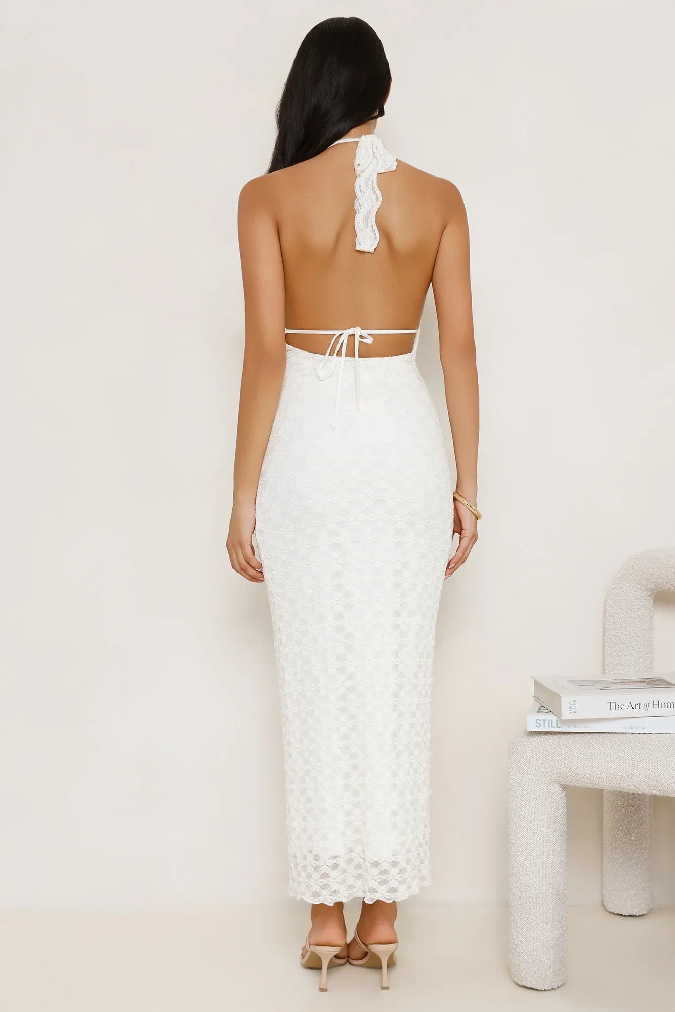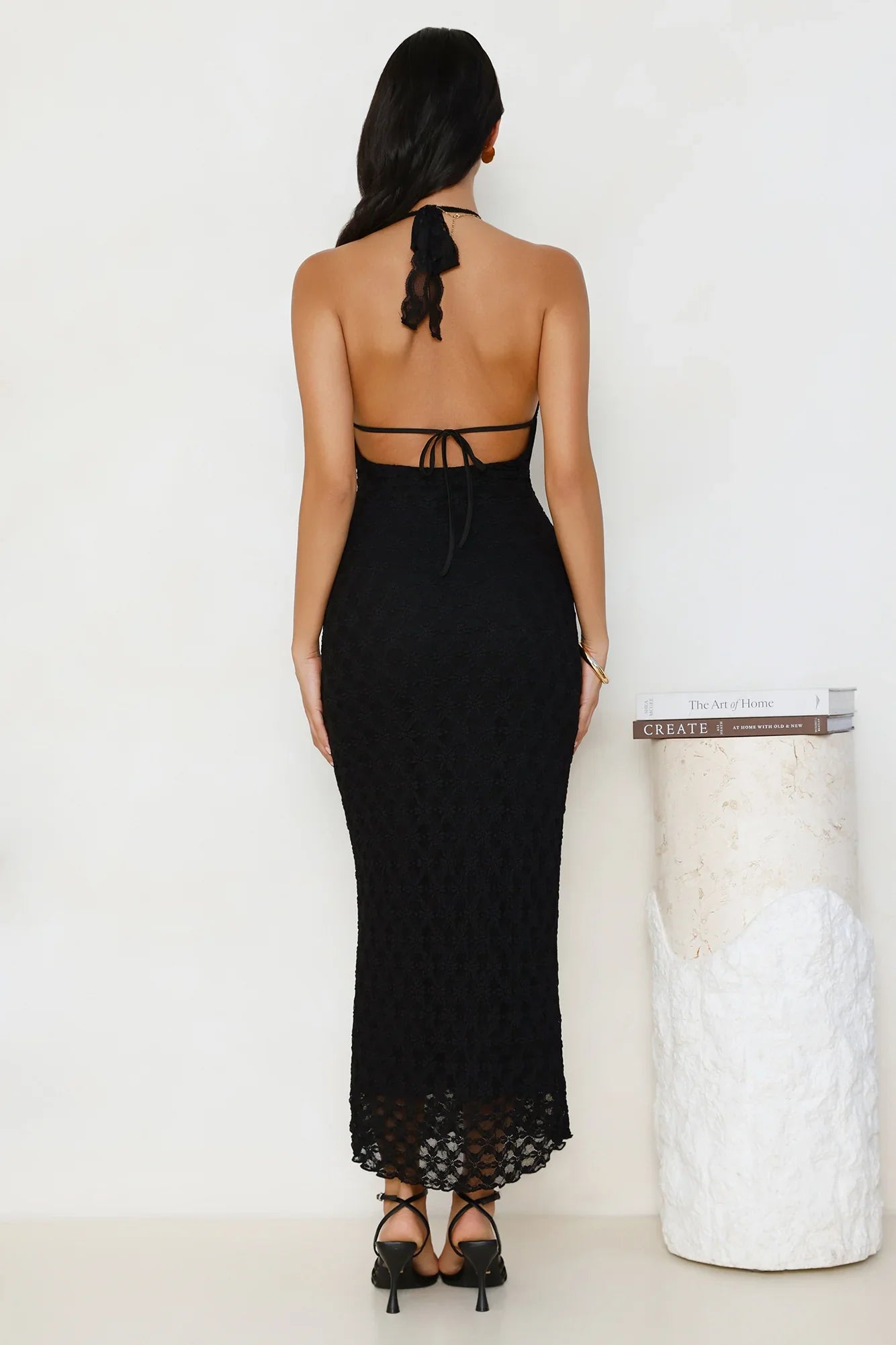 Turn heads in the Lace Me Up Halter Maxi Dress. Designed with a delicate unlined lace bodice, a halter tie neckline, and an open back. Style with heels and all your confidence.