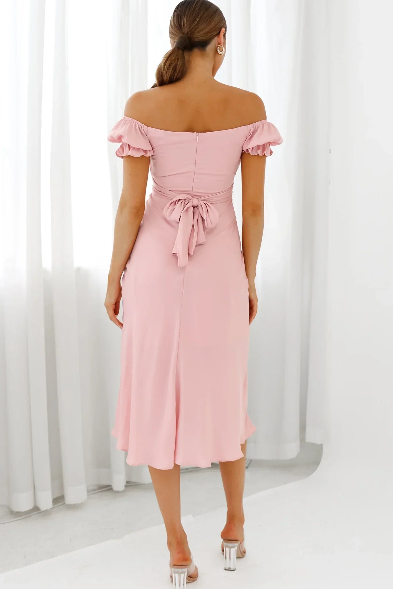 Stop what you are doing because this dress deserves a moment. Jaws will drop when you strut by in our adorable Linka midi dress. Featuring an off-shoulder style and the cutest puff sleeves, we're head over heels! Perfect for a wedding or special occasion paired with strappy heels and statement earrings. Hello, gorgeous!