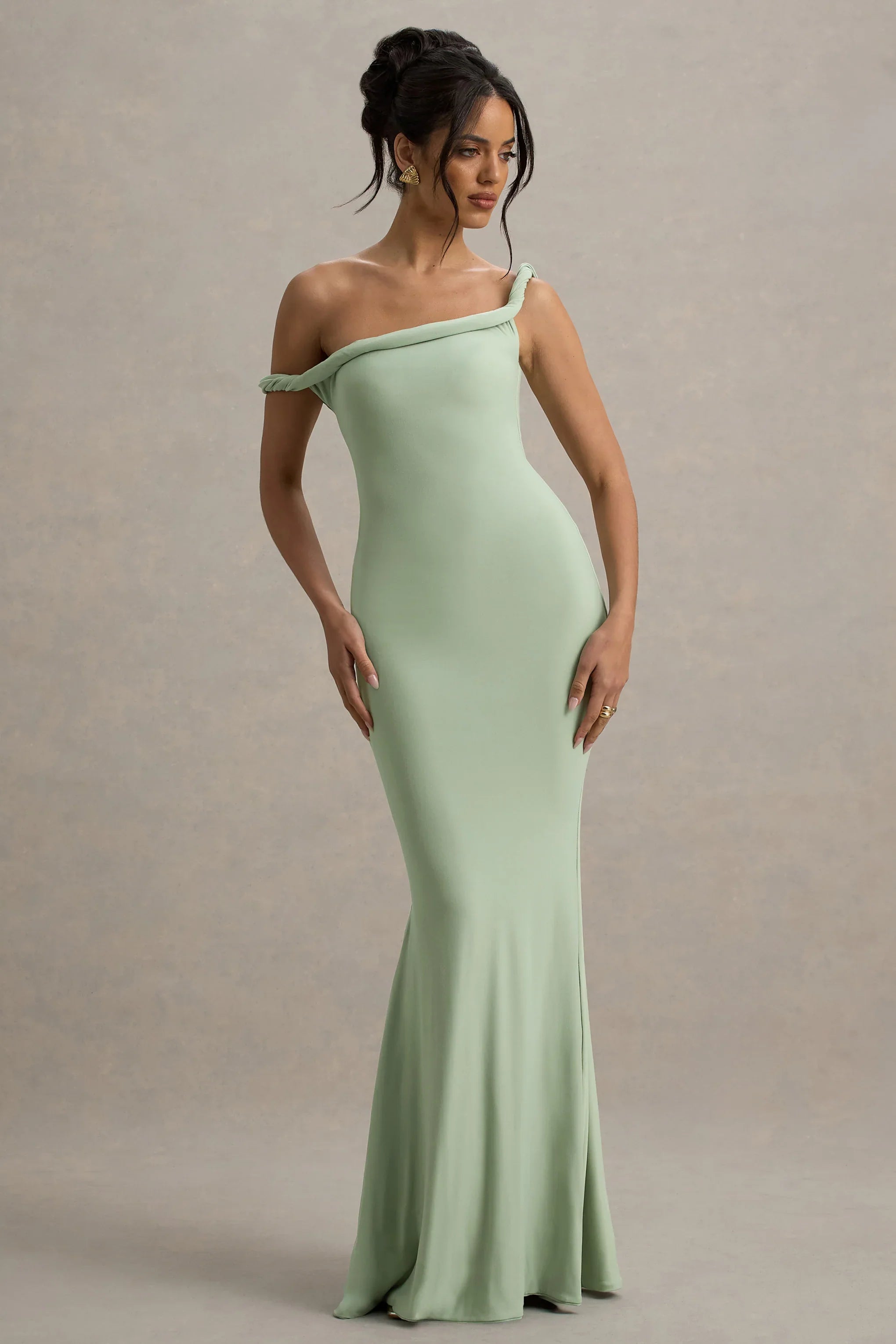 The latest must have maxi of the season is Lita. This maxi dress has been cut in a light green shade of our premium stretch jersey that hugs every curve. Boasting a twisted asymmetric neckline, style this stand-out staple with a tousled bun and some gold accents for a classic look.