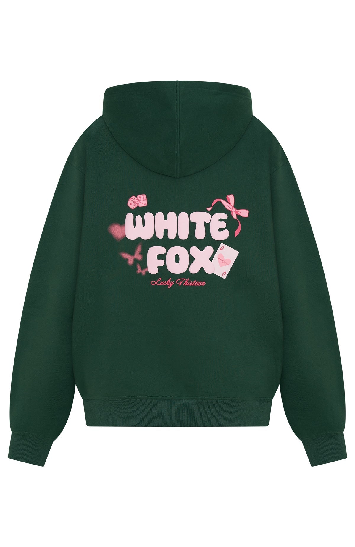 Play your cards right when styling the Lucky Thirteen Stephanie Oversized Hoodie in Green! Designed with a relaxed hood, drop shoulder design and ribbed hems which round out to an oversized silhouette. Featuring long sleeves, a roomy front pocket, and and soft, fleece interior, this hoodie delivers a cozy feel. White Fox puff‑print text embellishes the centre front and back, paired with a printed graphic. Style with the matching Lucky Thirteen Stephanie Lounge Shorts.