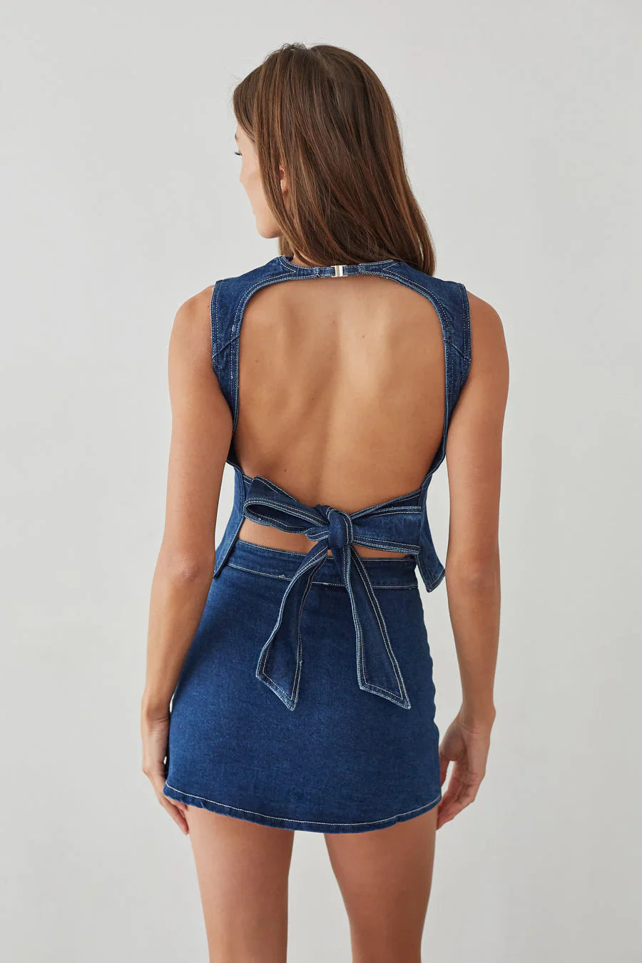Stand out in the Maggie High Waist Denim Skort this Spring Summer! This trendy mini skirt features a built-in shorts, high waist fit, and sexy side slit. Available in Dark Wash Denim; style with matching piece Maggie Denim Open Back Top to complete this look!