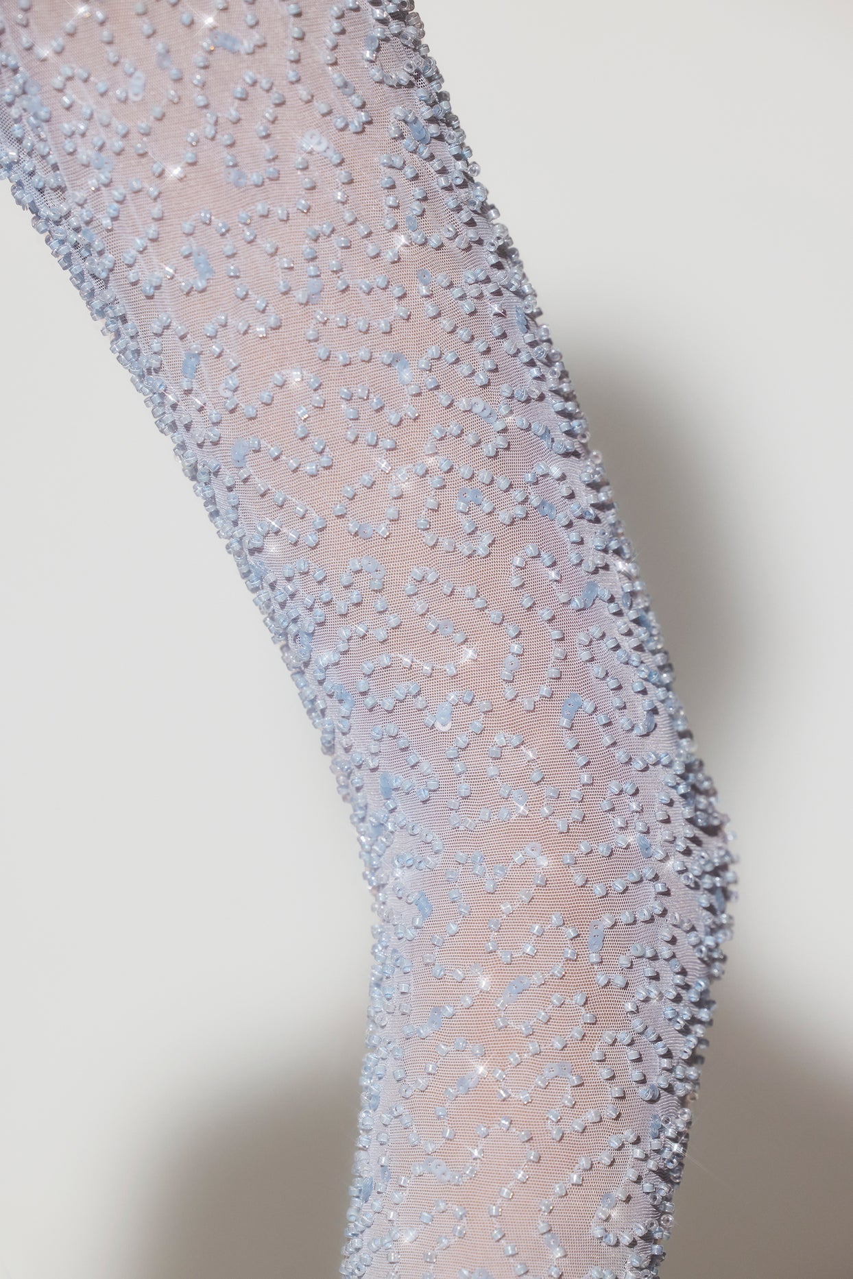 • Fully embellished bralette and sleeves with seeded beading