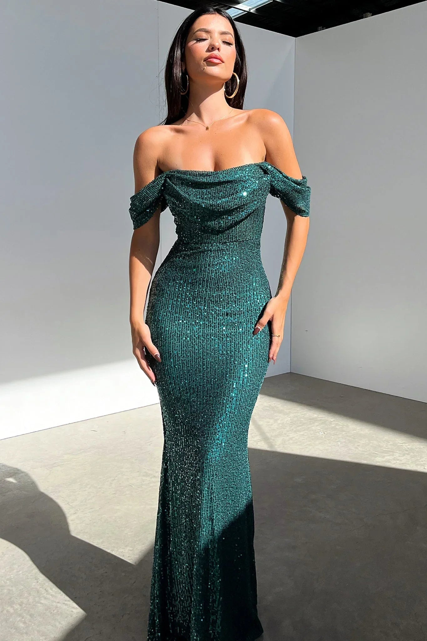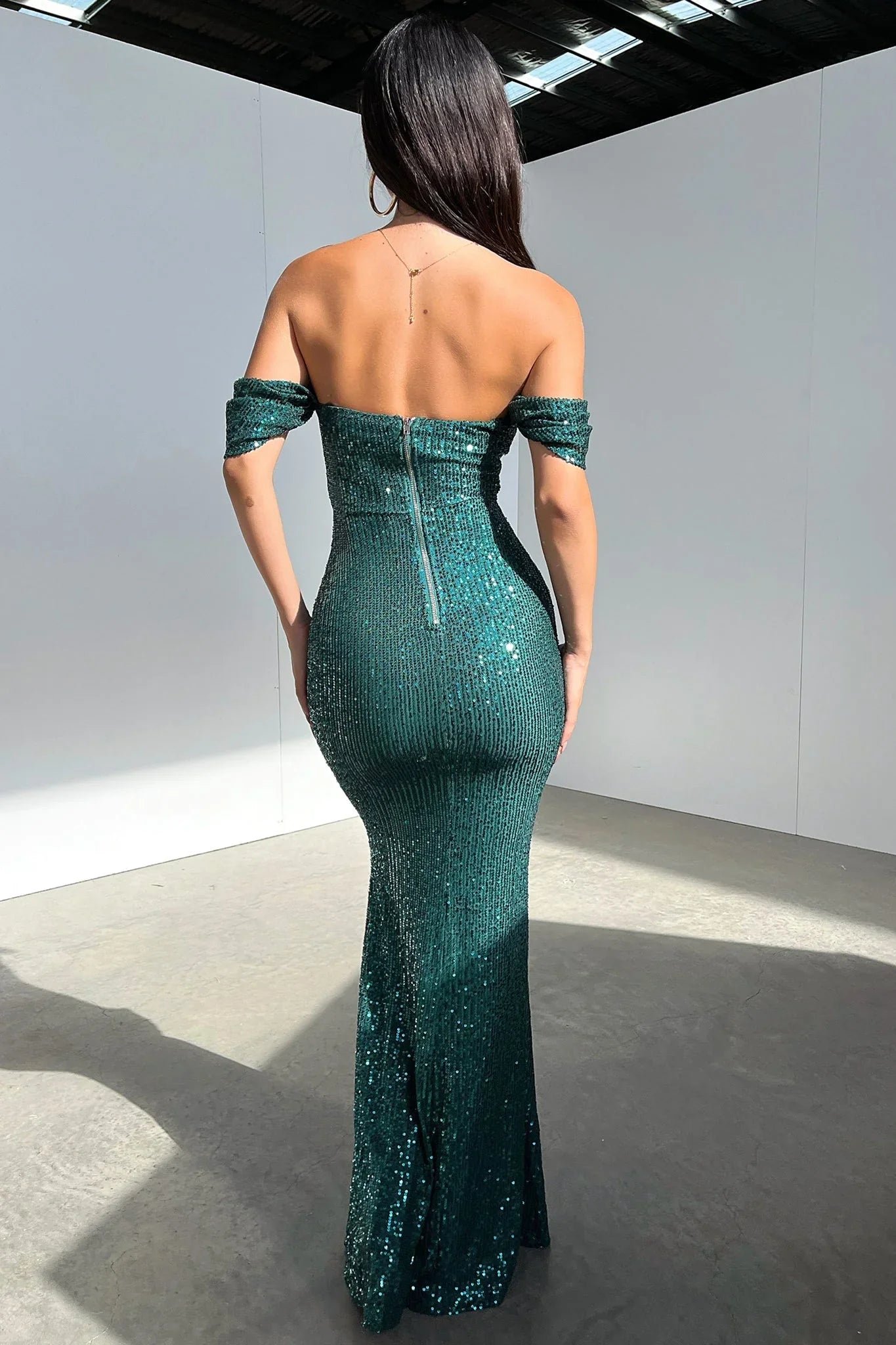 Shine Baby, Shine... This babe is the dress for your next special occasion. The Nara Dress is fully lined with an all over Black sequin fabrication, with off the shoulder sleeves, boning at the bust and back zipper, she is sure to have you standing out in the crowd. Pair her with Black strappy heels and simple jewellery for a glam god look.