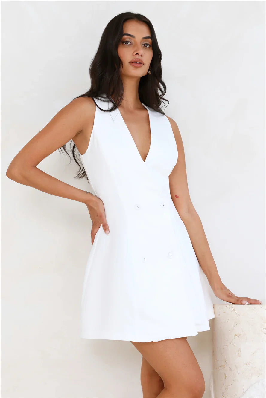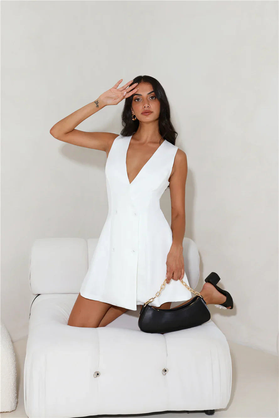 Elevate your work closet with the Office Chic Tailored Mini Dress. Featuring a button front and a tailored silhouette. Style with heels for a 'fit we love.