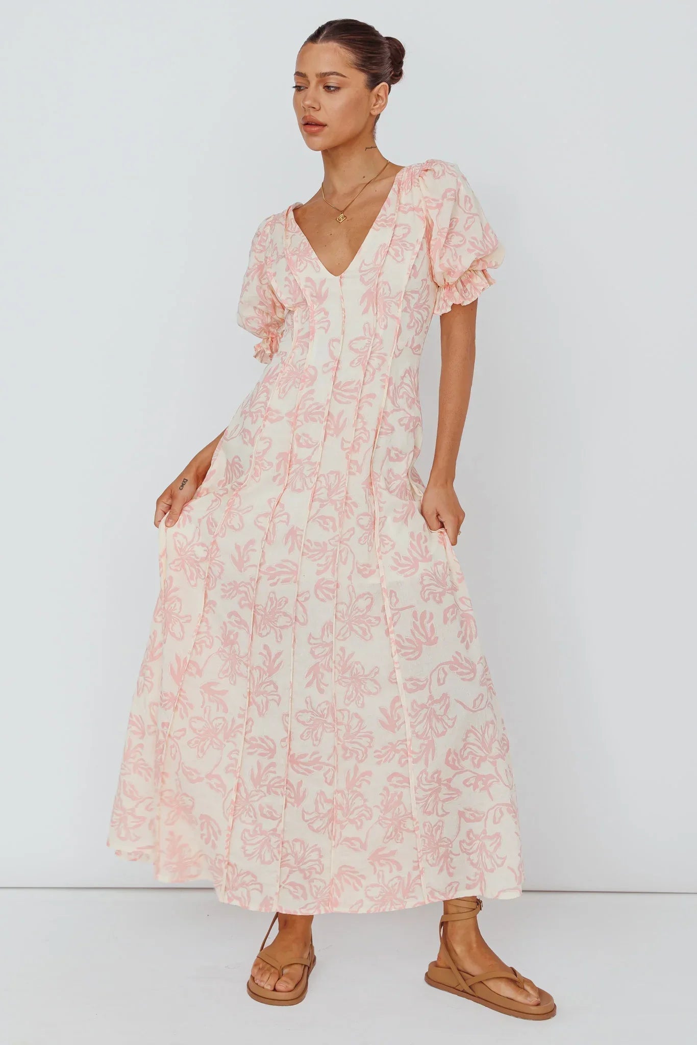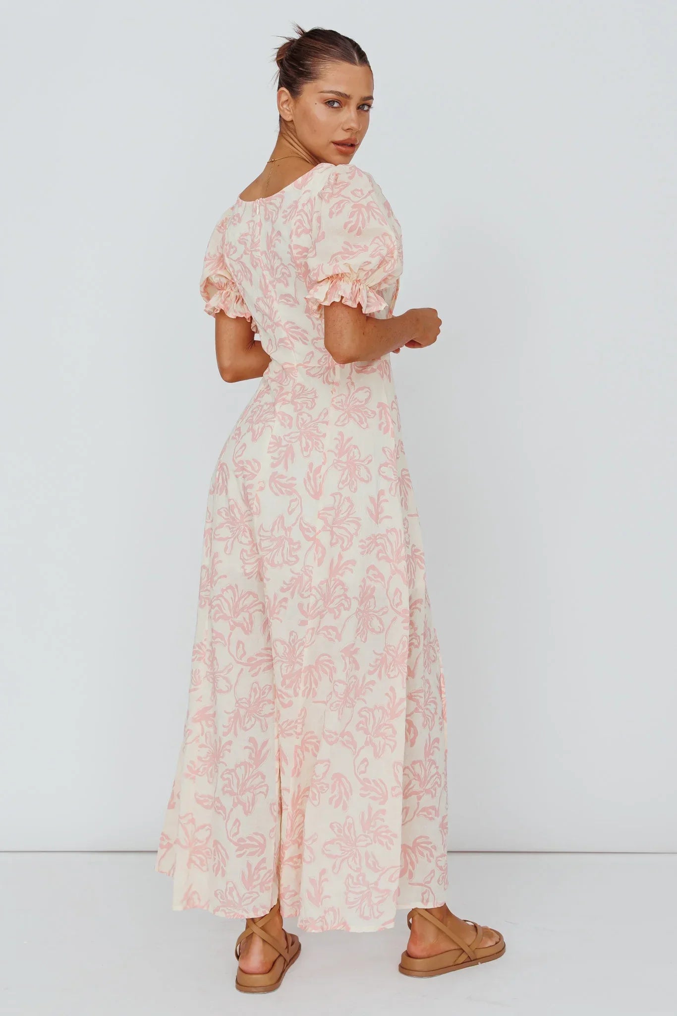 Twirl the day away in our dreamy Sitting Pretty maxi dress. Featuring puff sleeves and pintuck pleat detail. It's perfect for weekend brunch with your girls. Team it with tan mules and a saddle bag for a chic look we are loving.