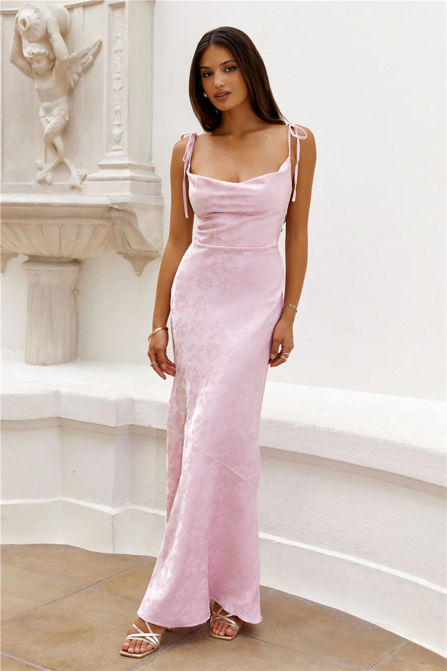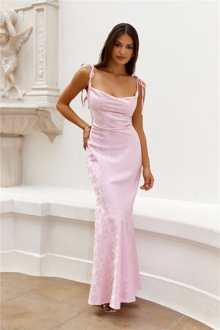 RSVP yes with the Sophisticated City Maxi Dress. Featuring a gorgeous cowl neckline, tie-up shoulder straps and a mermaid silhouette we're in love with. Style with heels and curls for all the compliments.
