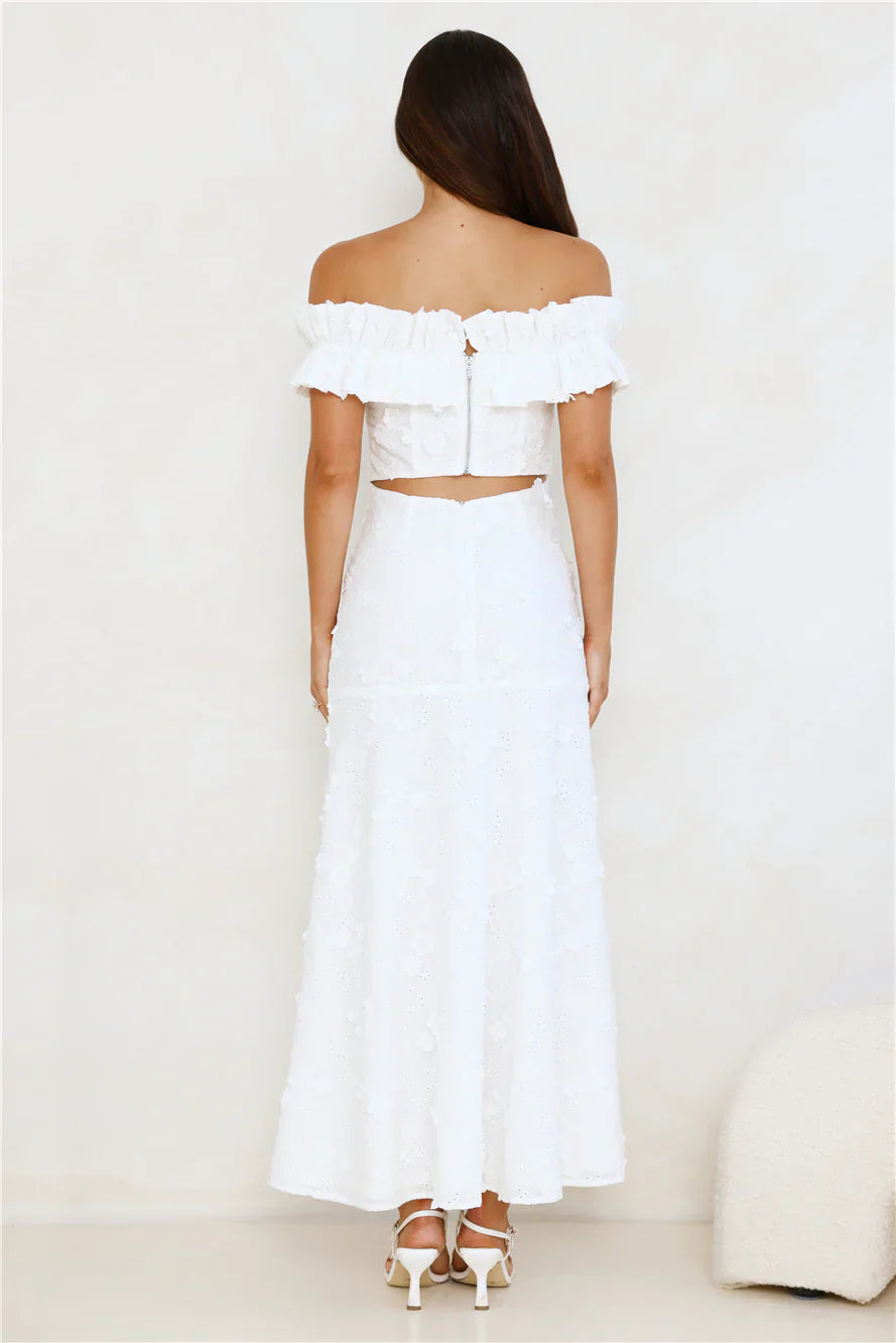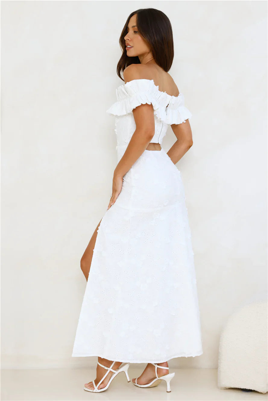 Lovely, this dreamy dress was designed exclusively for you. The Spring Serenade Off Shoulder Maxi Dress features an elastic off-the-shoulder neckline, an embroidered silhouette, and a cutout back—perfect for those warm, breezy days. Style with heels and soft curls for a look that’ll get all the likes!