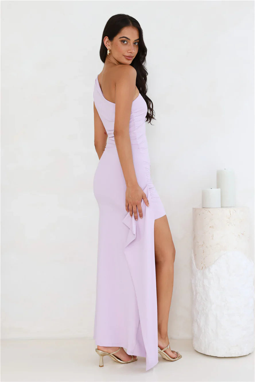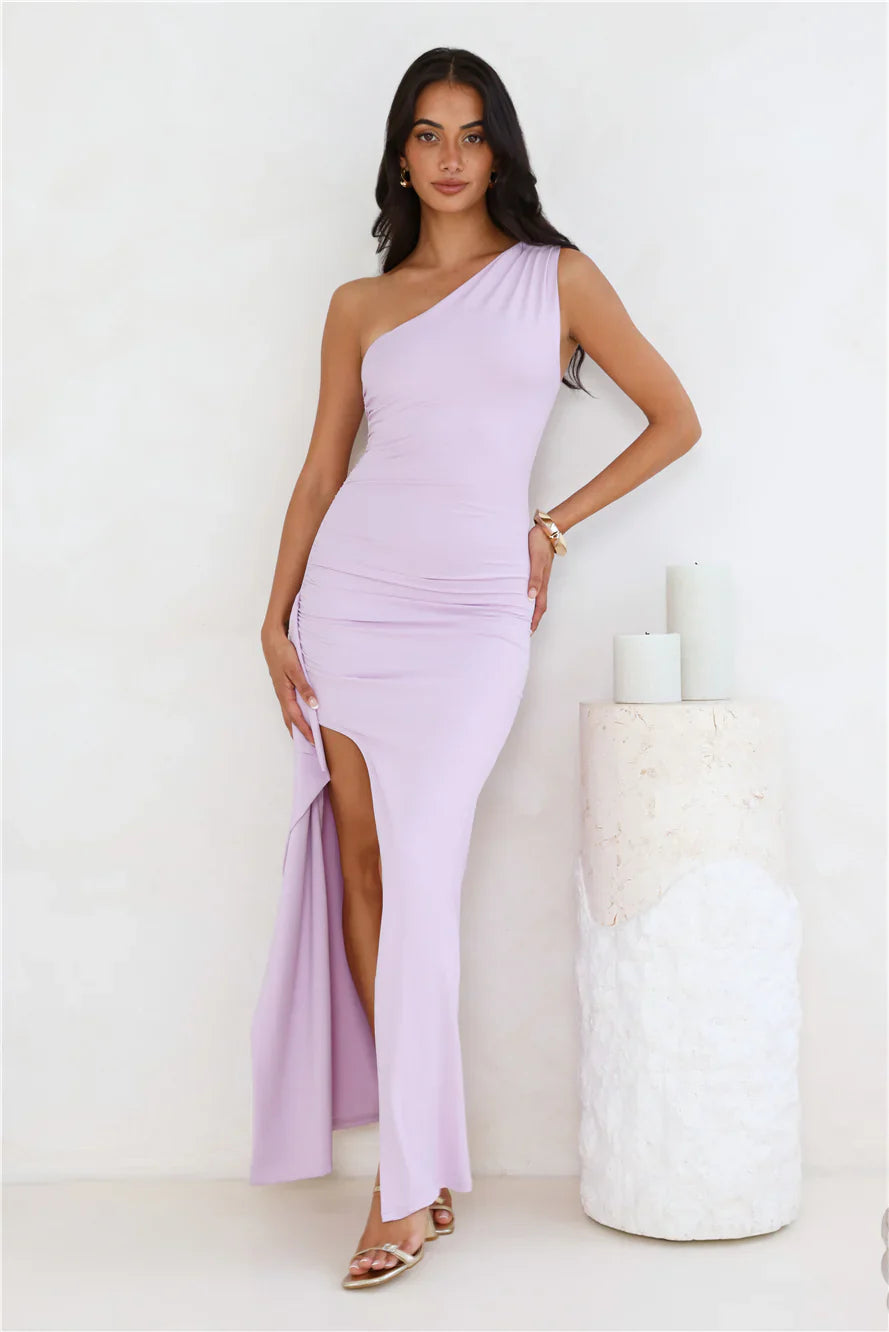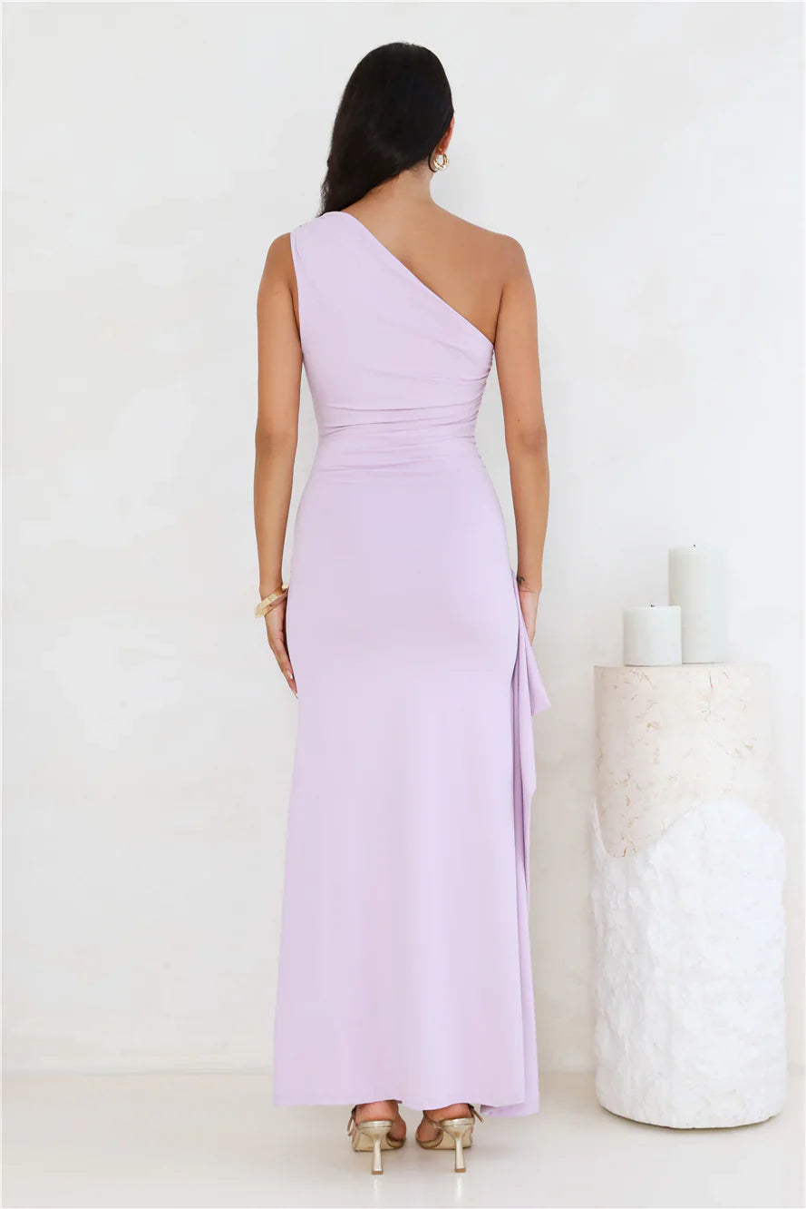 We're in love with this maxi dress, lovely. The Stay Classy One Shoulder Maxi Dress features a smooth buttery fabrication, a one-shoulder design and gathered details to the sides. Style with heels to be the best-dressed guest.