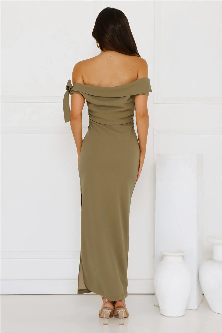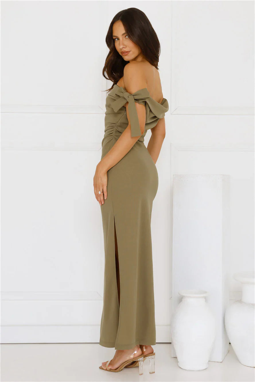Step into elegance with The Luxe Party Maxi Dress. Featuring an off-the-shoulder design and a tie strap at the shoulder. Pair with strappy heels, statement earrings, and a sleek clutch for a show-stopping look.