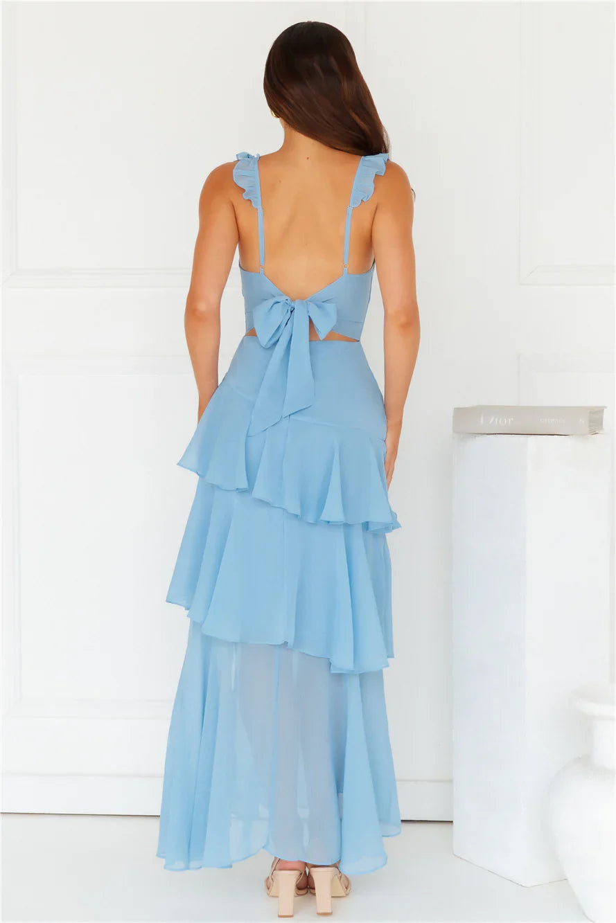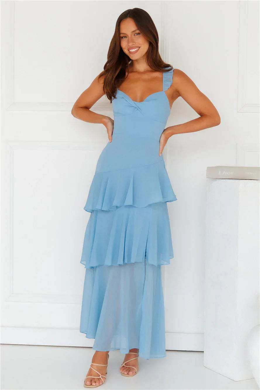 Be seen in a gorgeous style. The Trailblazing Maxi Dress features frilled shoulder straps, a statement tiered frill skirt and a tie-up back. Style with heels for a 'fit you'll want pics' in!