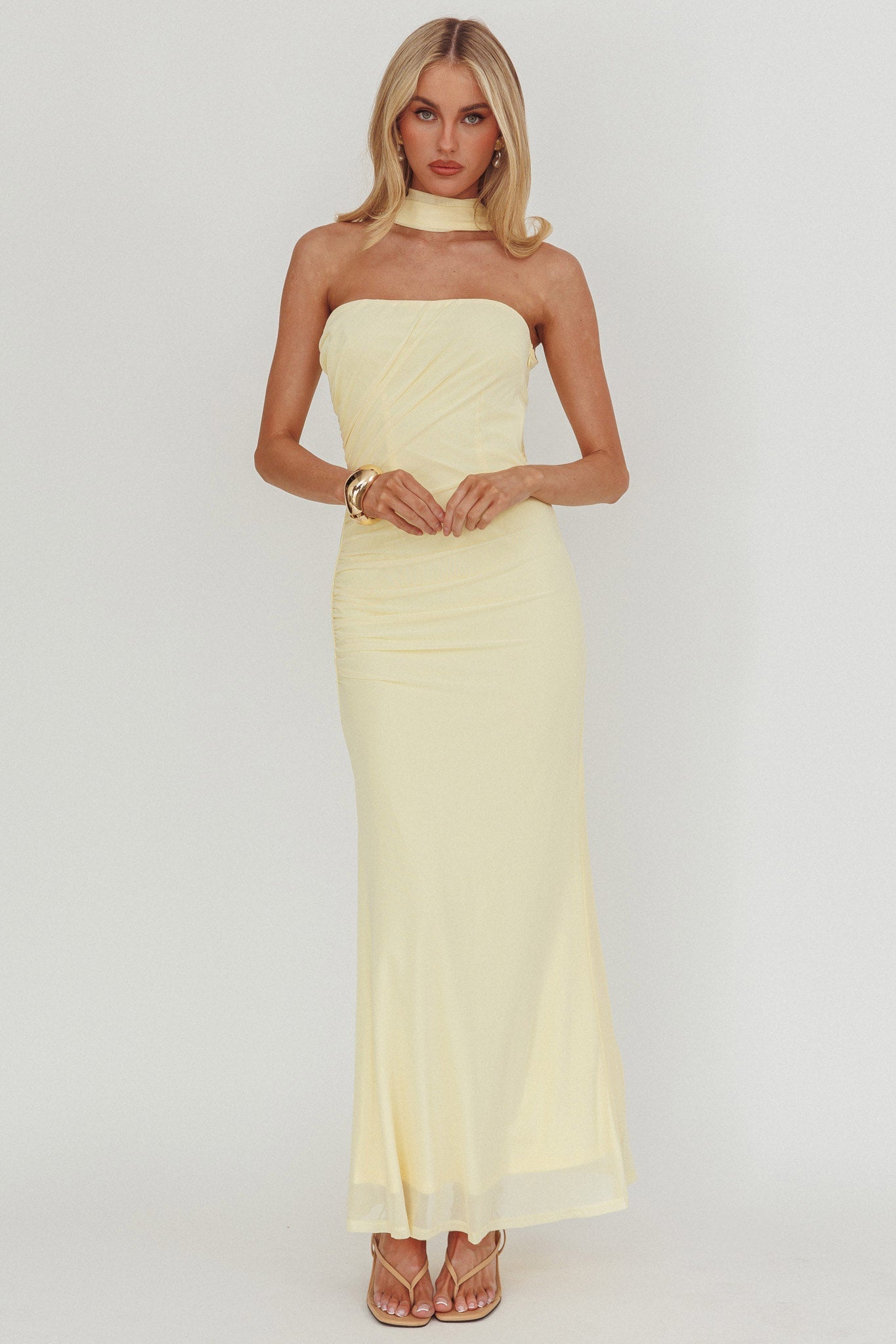 Steal the spotlight in our gorgeous Truth Be Told maxi dress. We are in love with its figure-hugging ruching detail in the sides and unique reverse halter design. Perfect for Friday night dinner and cocktails with your girls! Team it with strappy heels and a saddle bag for a look that will turn heads.