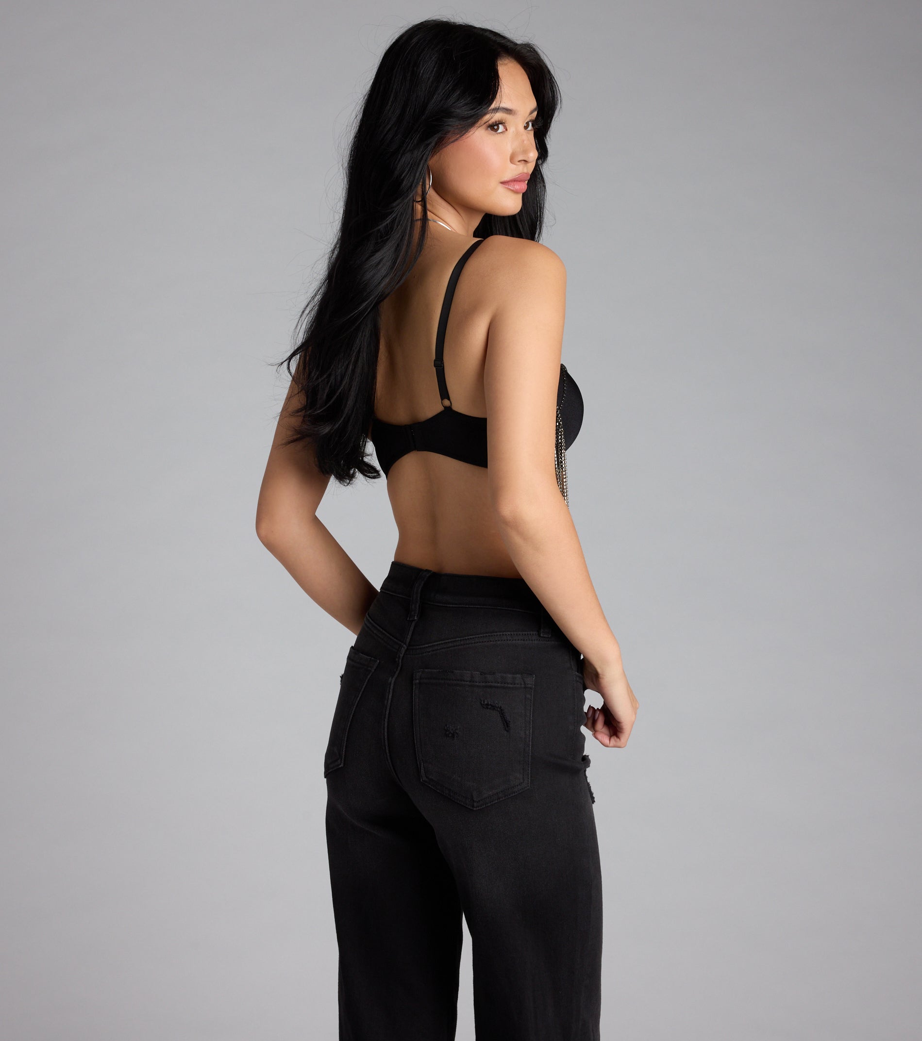 Make every concert or festival shimmer in this rhinestone fringe bra top and have all eyes on you!