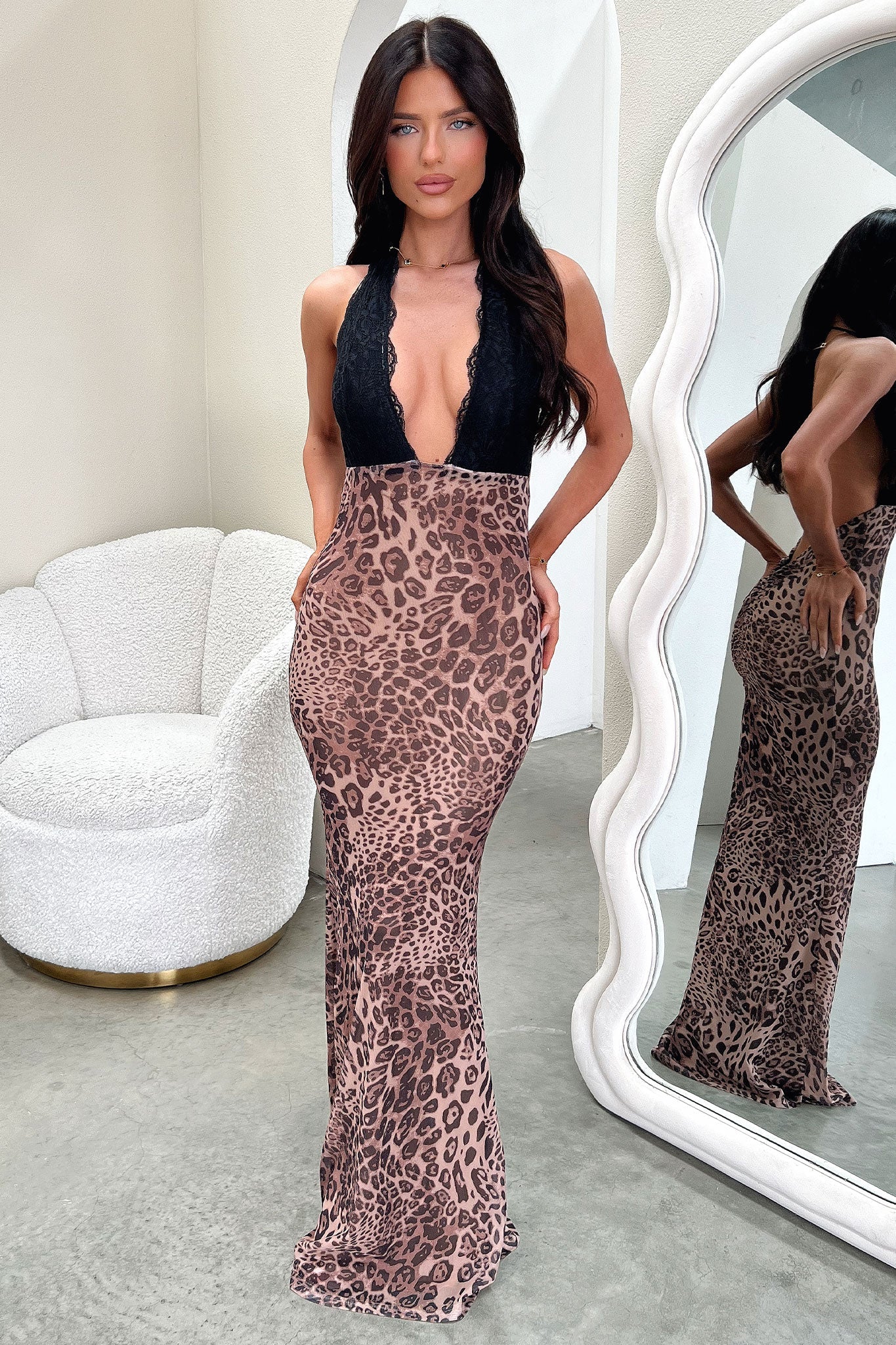 Get ready to turn heads in the Whittaker Maxi Dress! This fitted style dress features delicate black lace detailing on the bust and subtle ruching in the back, adding a touch of elegance to the overall look. The double lining provides comfort and coverage, while the open back and halter neck tie straps add a playful and alluring touch. Paired with black heels and a matching shoulder bag, this dress is the perfect choice for your next date night!